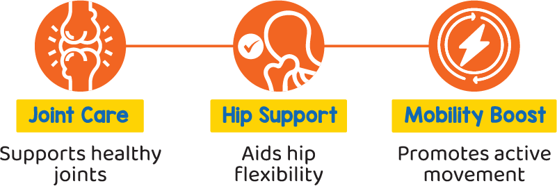 Improves joint mobilityIrresistible tasty flavorRelieves arthritis discomfortStrengthens hip & jointsSupports bone health